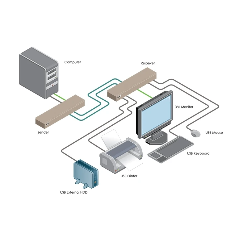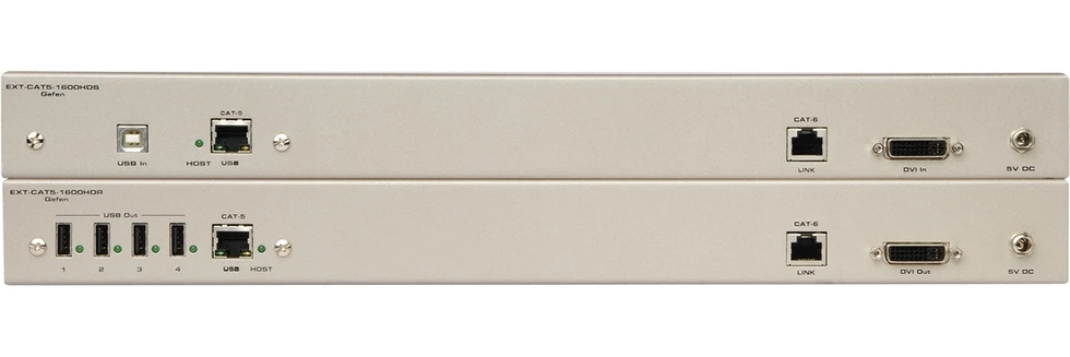 Комплект устройств для передачи сигналов DVI-D 1080p (1920x1200) с HDCP и EDID, USB 2.