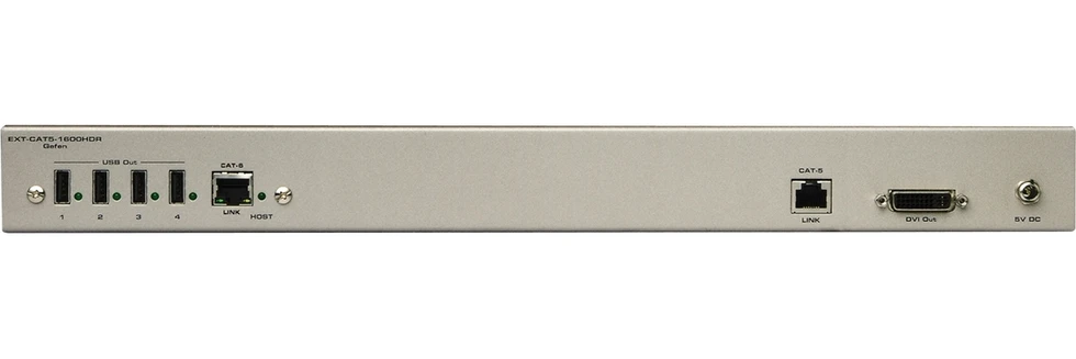 Комплект устройств для передачи сигналов DVI-D 1080p (1920x1200) с HDCP и EDID, USB 2.0 по двум витым парам, хаб USB на 4 порта, расстояние 60 м – CAT6a, 45м – CAT5e, корпус для монтажа в стойку (1U).