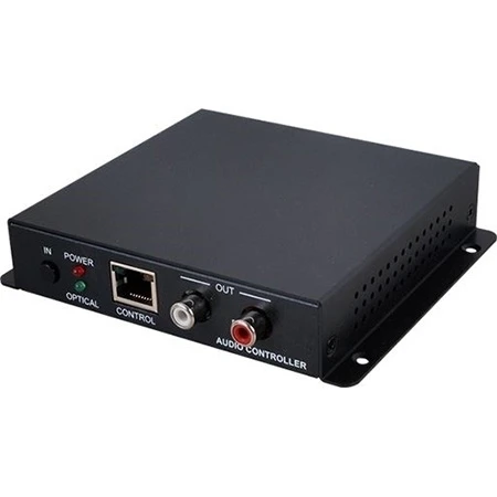 Конвертер цифрового аудио S/PDIF (TOSLINK) частотой до 192 кГц в аналоговое и коммутатор 2х1 аналогового аудио (2хRCA). В режиме bypass подключен аналоговый вход, управление по IP.
