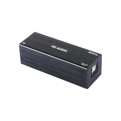 Конвертер двух каналов цифрового аудиосигнала из USB-B в S/PDIF (Toslink) для входа в усилитель мощности с частотой дискретизации до 384 кГц / 24 бит.