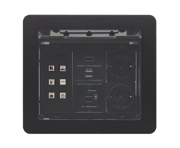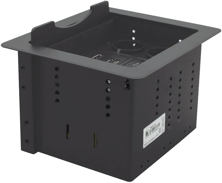 Корпус модуля для подключения кабелей, убирающаяся крышка из анодированного алюминия, цвет серебристый.
