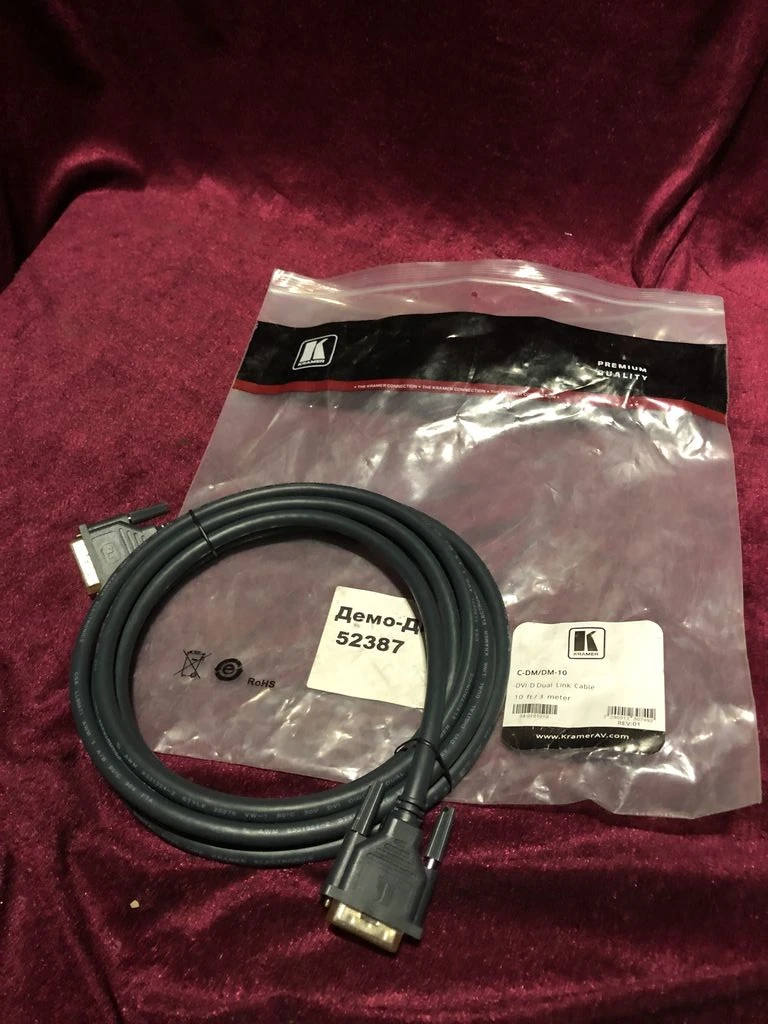 C-DM/DM - Кабели Kramer DVI-D dual link предназначены для передачи только цифровых сигналов (24+1 контакт). Интерфейс DVD-D используется для прямой стыковки источника сигнала (в основном компьютерных видеокарт) и приёмника (цифрового монитора или проектора). Природа цифрового сигнала обеспечивает получение изображения более высокого качества, чем для аналогового сигнала. Любая видеокарта изначально генерирует цифровое видеоизображение, которое затем преобразуется в аналоговую форму на выходе VGA. Такой аналоговый сигнал подаётся в монитор, где преобразуется вновь в цифровой формат. Интерфейс DVD-D устраняет необходимость преобразования в аналоговую форму и улучшает качество связи источника и дисплея. Кабели DVI-D dual link обеспечивают дополнительную полосу пропускания сигнала для получения максимальной точности и разрешения. Кабели с сечением жилы 28AWG служат для передачи цифрового сигнала на расстояния до 20 метров. (длина в футах)