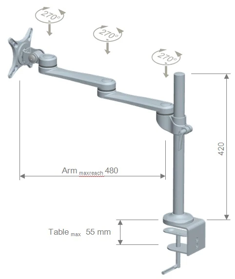 Крепление для монитора Kondator 438-LC10, максимальная нагрузка 8 кг. Стильное надёжное крепление с 4-мя суставами позволяет выбрать нужное положение экрана. Легкость монтажа монитора при помощи "Quick-Lock" и очень простая регулировка экрана по высоте. Интегрированный кабель-канал для укладки соединительных проводов. Крепление на стол и в стену входит в комплект.