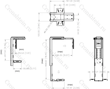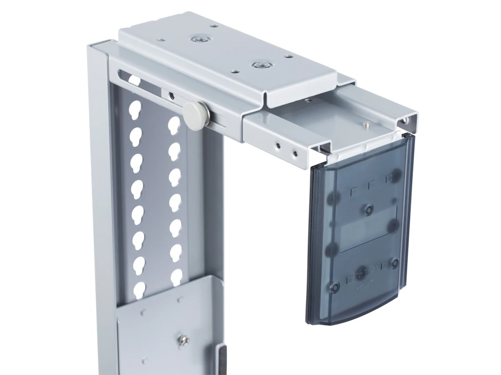 Крепление-подставка для системного блока под стол или на стену с защитой от вибрации. Доступна регулировка по длине, глубине и высоте (3-22 см х 20-48 см х 25-47 см). Максимальная нагрузка 12 кг. Цельнометаллическая конструкция.