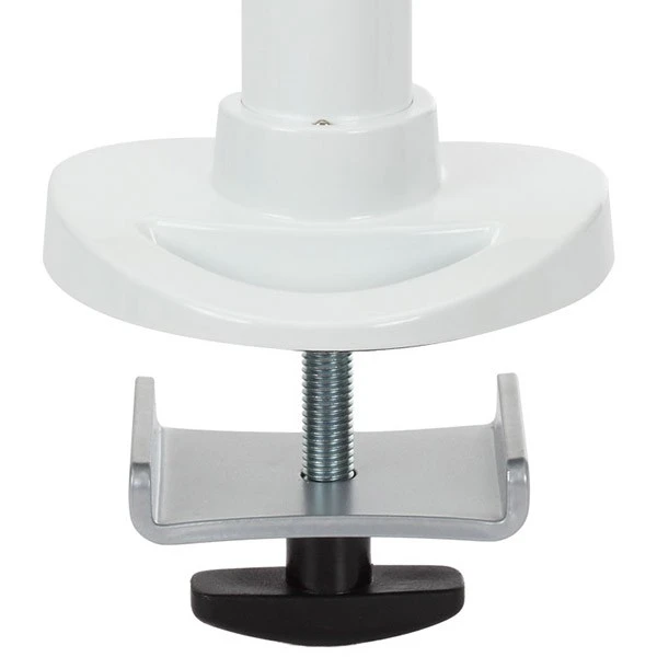 Крепление для двух мониторов до 12 кг. Фиксируется к столу с помощью упора с винтом (требуется отверстие под него). Вращение монитора на 360 градусов, наклон 30 градусов в обе стороны. VESA 75х75, 100х100, кабель-канал. Регулировка высоты на 15 см. Цвет: серебристый,чёрный