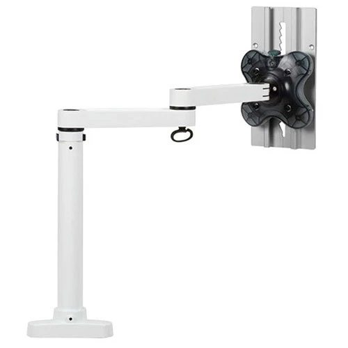 Крепление для одного монитора до 12 кг. Фиксируется к столу с помощью упора с винтом (требуется отверстие под него). Вращение монитора на 360 градусов, наклон 30 градусов в обе стороны. VESA 75х75, 100х100, кабель-канал. Регулировка высоты на 15 см. Цвет: белый.