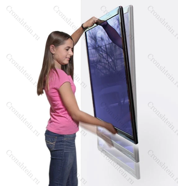 Оригинальный дизайн позволяет данному креплению быть незаметным за панелью, при этом сохраняя беспрецедентную регулировку высоты легким прикосновением. Перемещайте панель вниз, чтобы смотреть изображение сидя, или вверх для того, чтобы было удобно смотреть стоя.