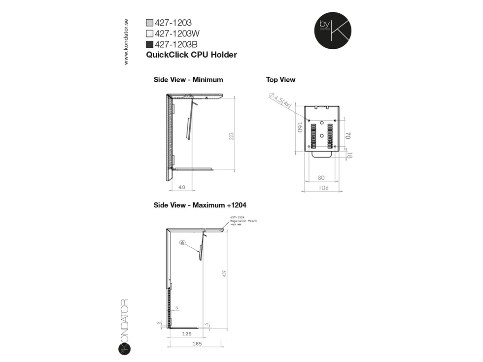 Кронштейн для системного блока под стол, 427-1203W серия QuickClick.