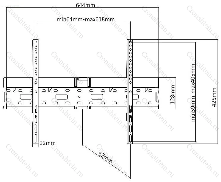 Фиксированный кронштейн для ТВ Digis DSM-P5546.арт 7197 подходит для телевизоров с диагональю экрана от 37 до 70 дюймов и имеющих максимальный вес до 35 кг. Расстояния между стеной и телевизором 62 мм.