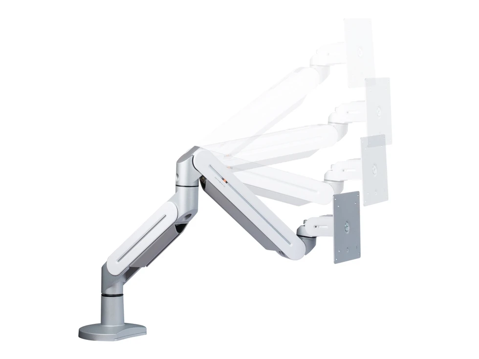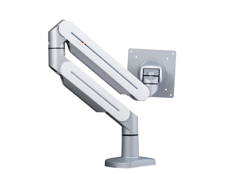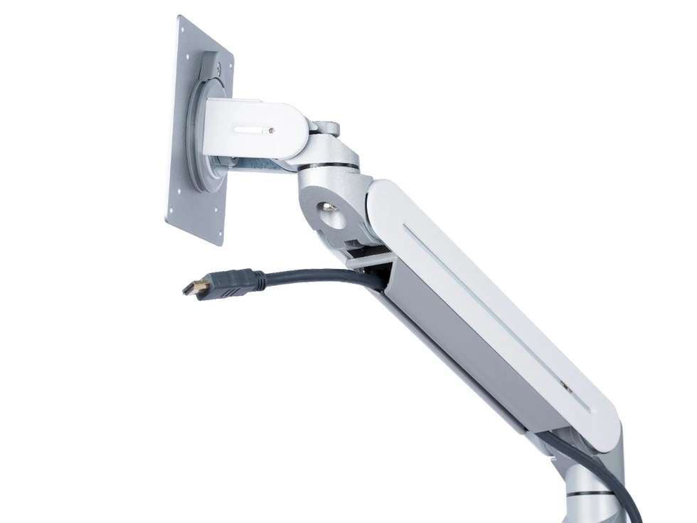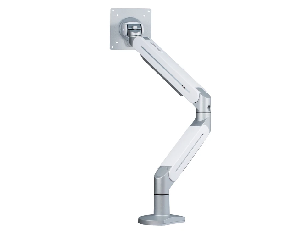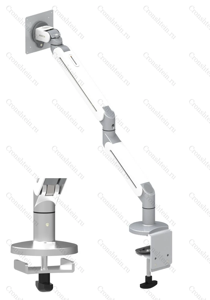 Шарнирное настольное крепление для одного монитора до 24 дюймов. Доступна регулировка высоты в пределах 30 см, вращение на 360 градусов. VESA 75х75, 100х100. Используется крепление типа струбцина, не требующее сверления отверстий. Удобный кабель-канал. Максимальная нагрузка 8,5 кг.