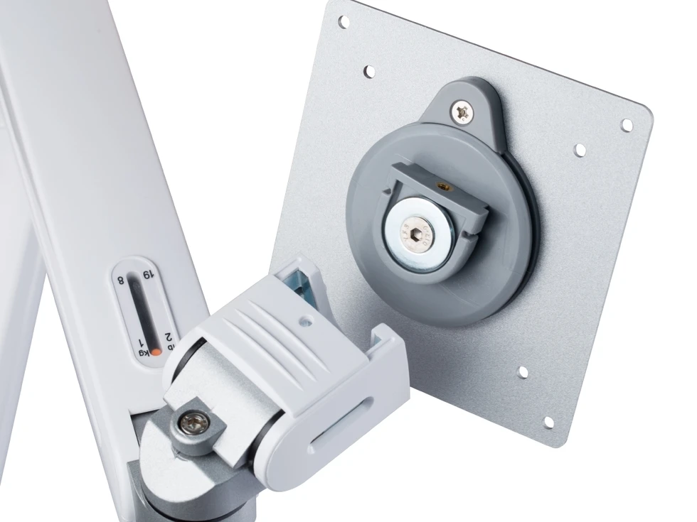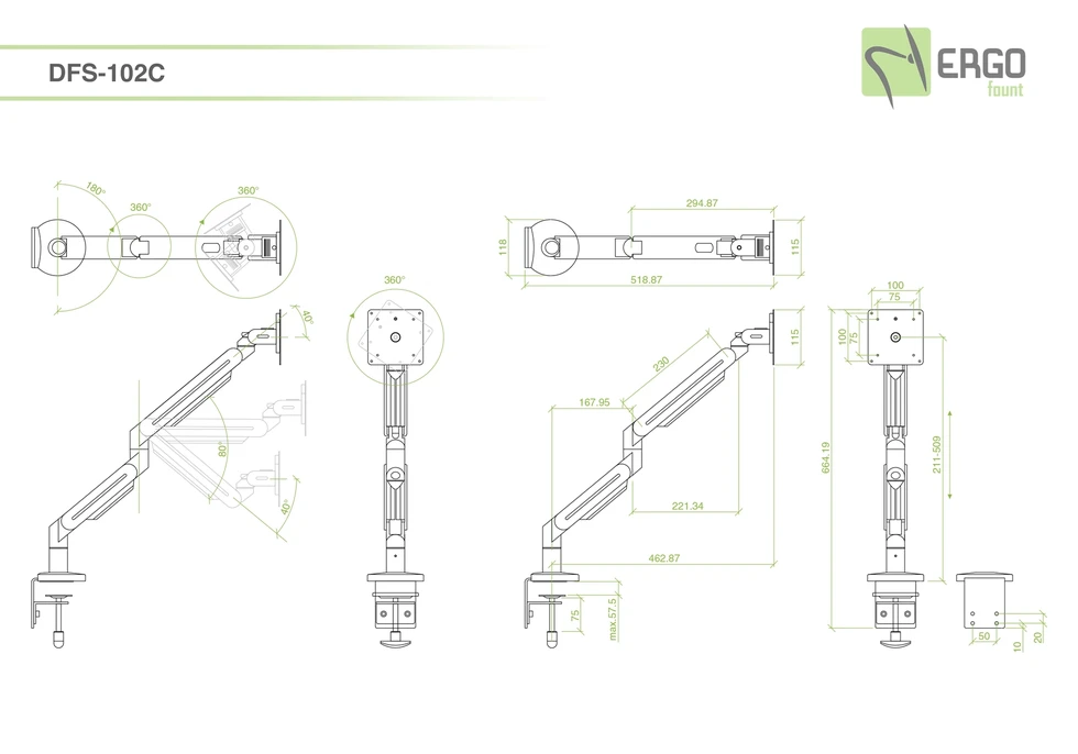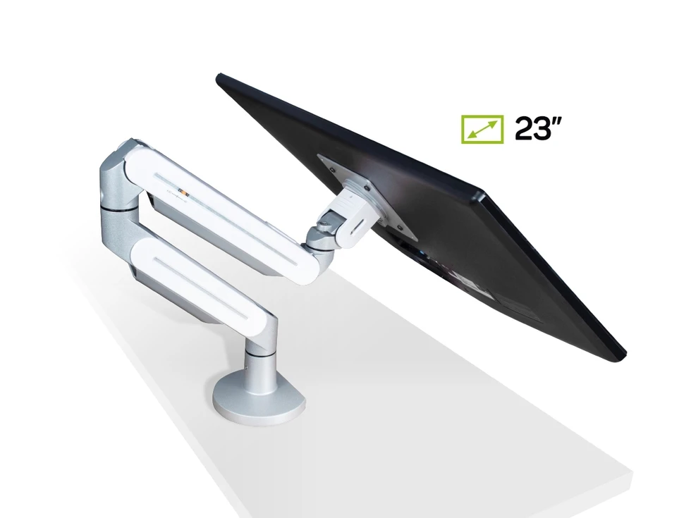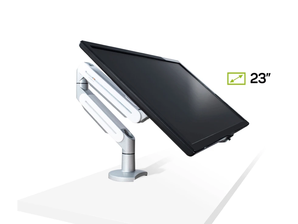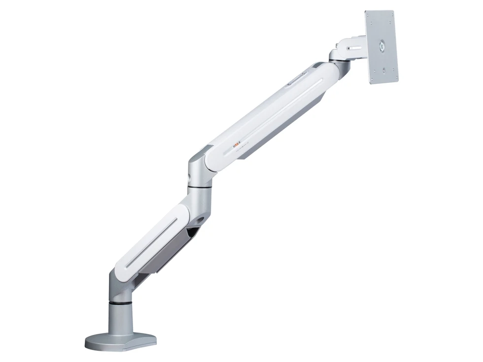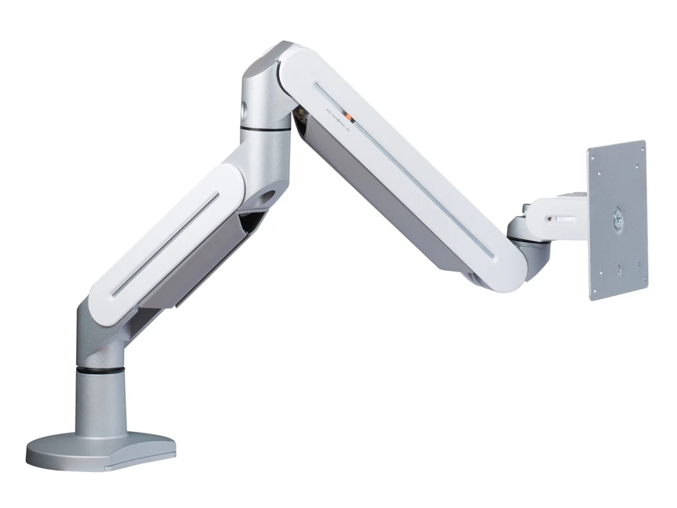 Шарнирное настольное крепление для одного монитора до 24 дюймов. Доступна регулировка высоты в пределах 30 см, вращение на 360 градусов. VESA 75х75, 100х100. Используется крепление типа струбцина, не требующее сверления отверстий. Удобный кабель-канал. Максимальная нагрузка 8,5 кг.