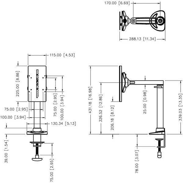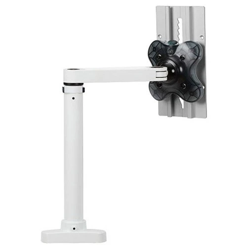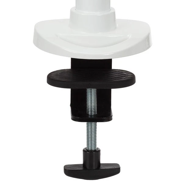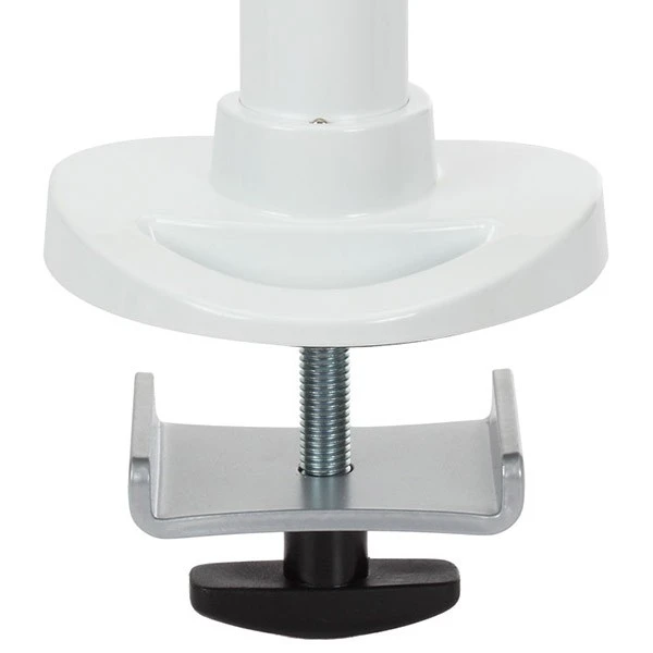 Крепление для одного монитора до 12 кг. Фиксируется к столу с помощью упора с винтом (требуется отверстие под него). Вращение монитора на 360 градусов, наклон 30 градусов в обе стороны. VESA 75х75, 100х100, кабель-канал. Регулировка высоты на 15 см. Цвет: серебристый.