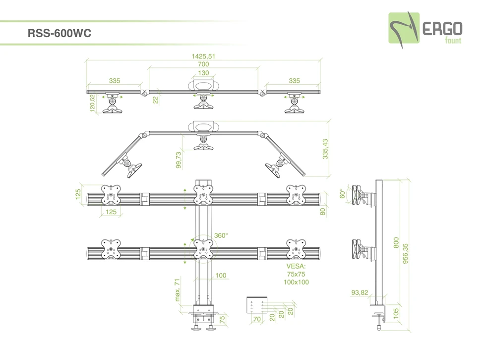 Кронштейн ERGO RSS-600WC (EGAR-8026W)