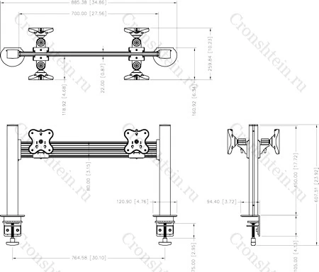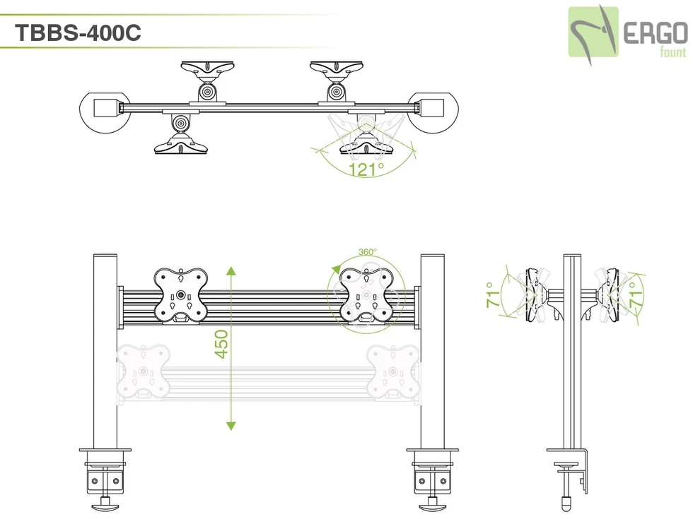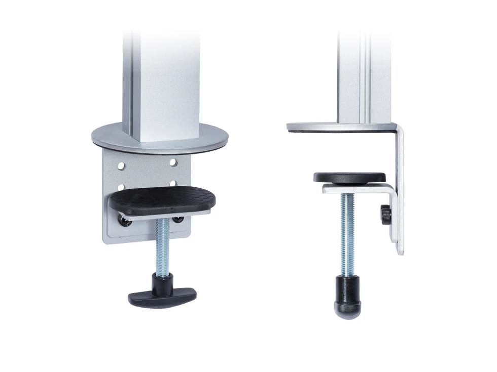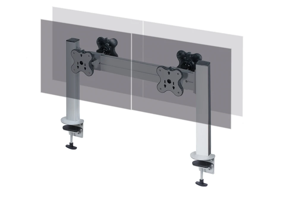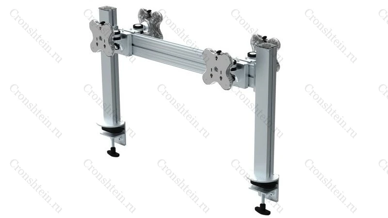 Настольное прямое крепление для четырех мониторов до 24 дюймов в положении спина-к-спине . Доступна регулировка по ширине и высоте (45 см), вращение на 360 и наклон на 30 градусов. VESA 75х75, 100х100. Используется крепление типа струбцина, не требующее сверления отверстий. Максимальная нагрузка 48 кг.