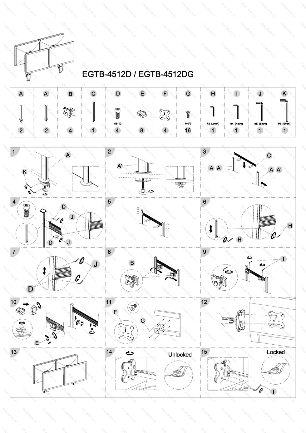 • Макс.нагрузка: 48 кг (12 кг на монитор)