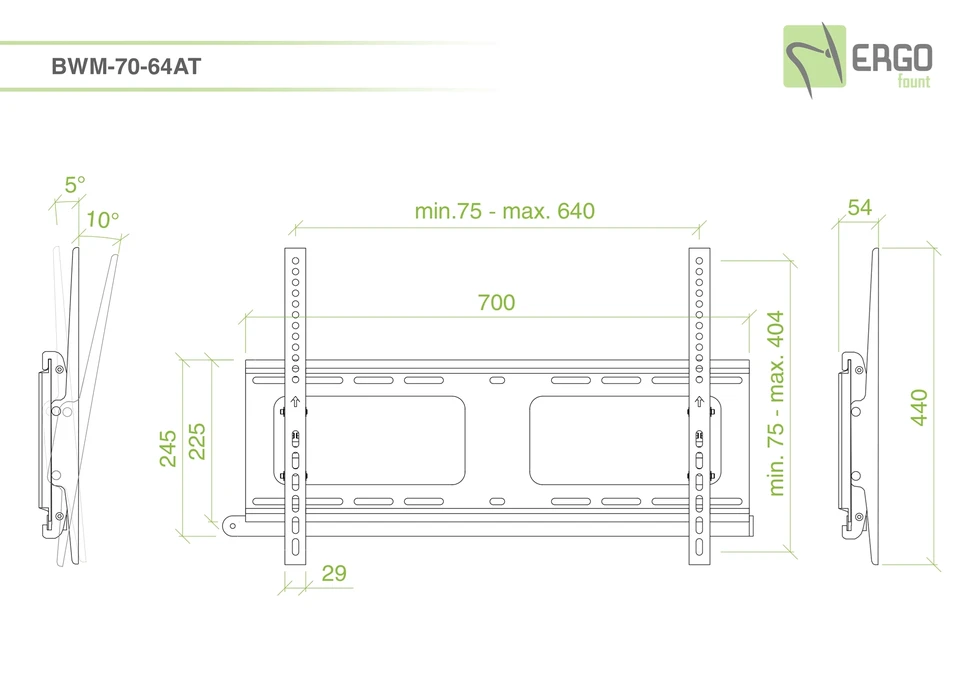 Технические характеристики кронштейн ErgoFount BWM-70-64AT. арт.8307: