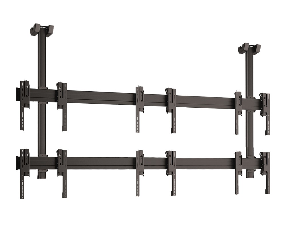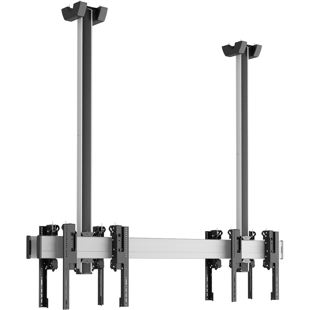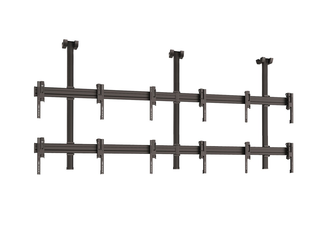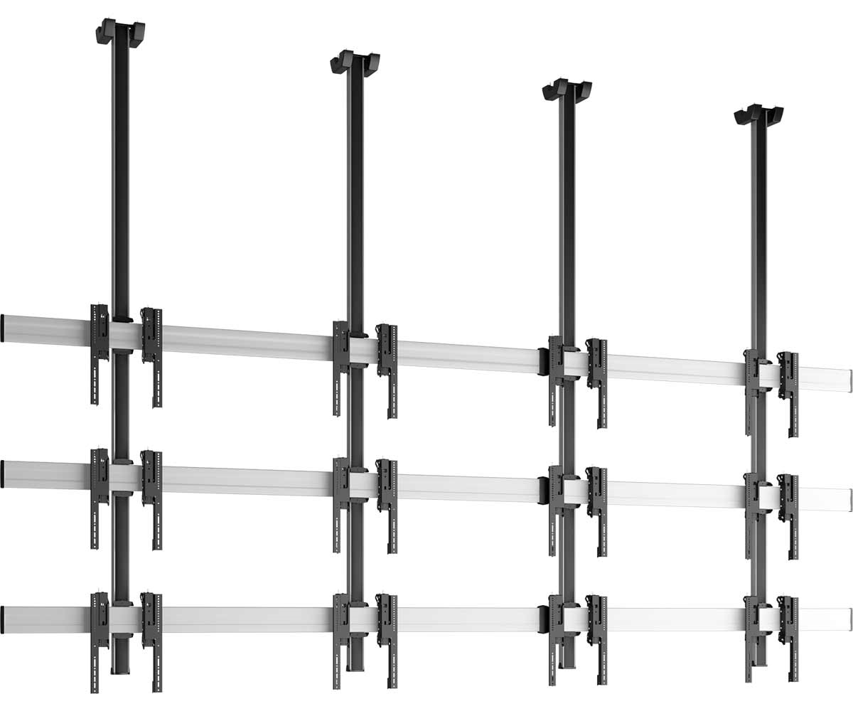 Потолочные крепления для видеостен также должны быть точно рассчитаны на определенный вес и размер мониторов. Ведь ненадежное крепление или слишком большой вес конструкции может привести к тому, что монитор сорвется с крепления, поэтому соблюдение техники безопасности является важным фактор.
