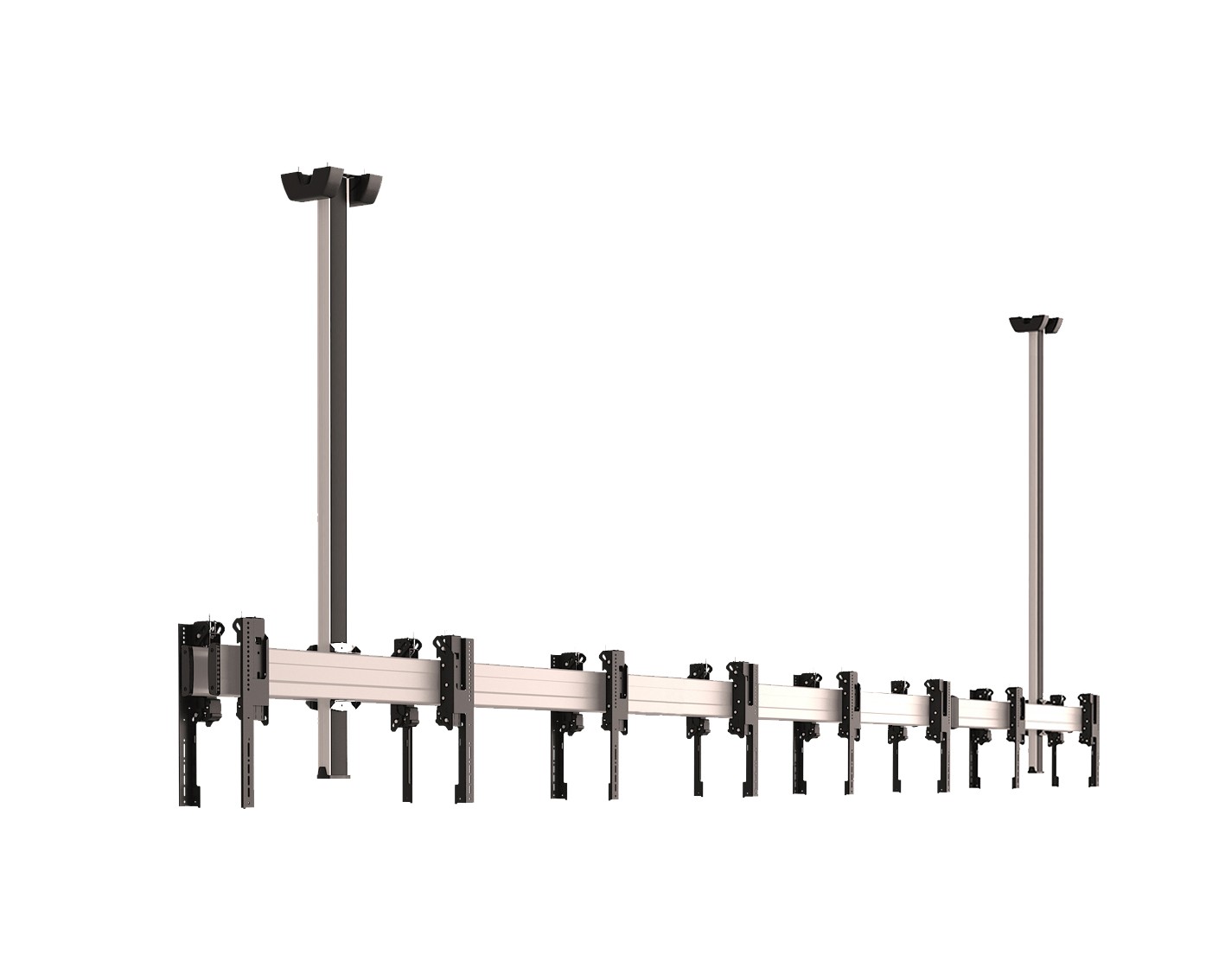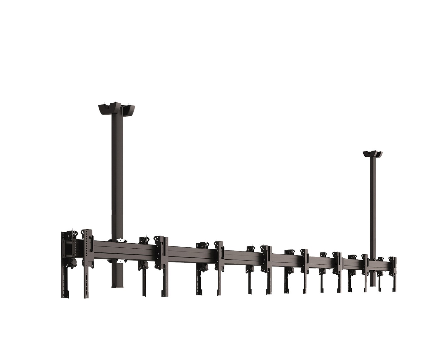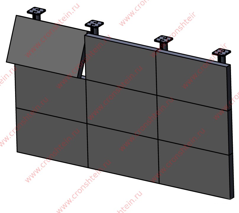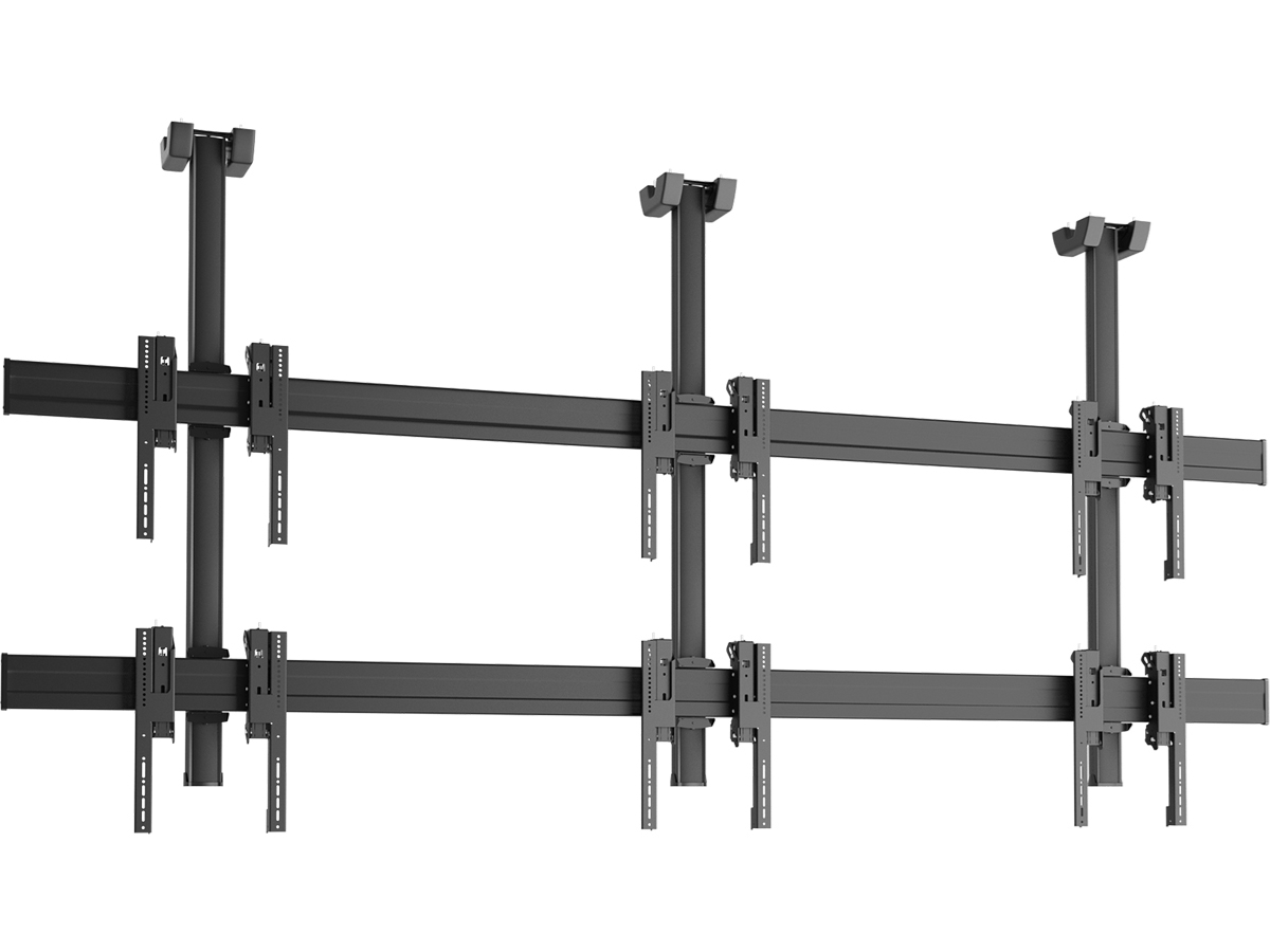 Потолочные крепления для видеостен также должны быть точно рассчитаны на определенный вес и размер мониторов. Ведь ненадежное крепление или слишком большой вес конструкции может привести к тому, что монитор сорвется с крепления, поэтому соблюдение техники безопасности является важным фактор.