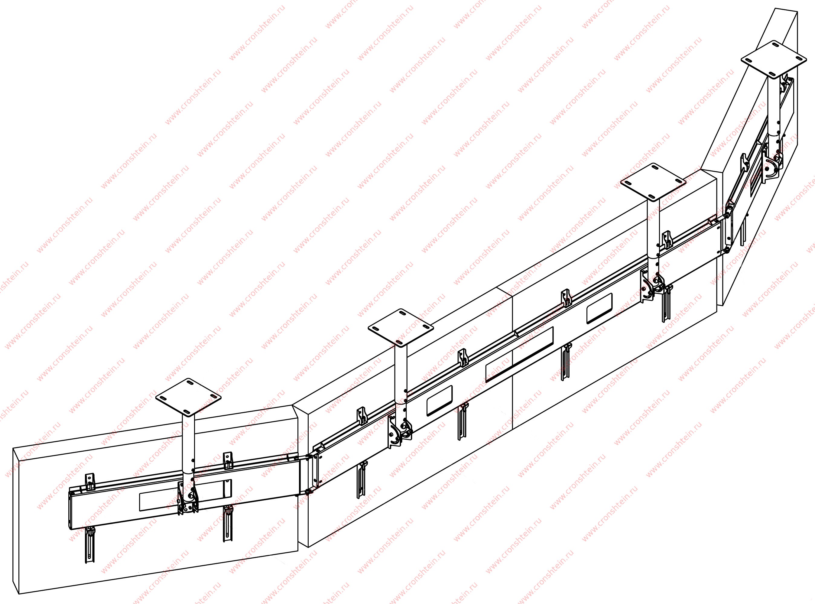 Еще одно достоинство потолочных креплений для видеостен – это ровная поверхность после монтажа, плюс ее положение относительно стены можно регулировать и надежно закрепить в нужном положении. Защелкивающийся двухкнопочный механизм позволит быстро и легко произвести установку потолочных креплений для видеостен.