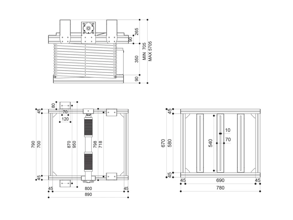 Лифт для проектора, выдвигается на 5000 мм. Программируемые позиции: 3. Управление: реле, RS-232. Напряжение: 220 В. Комплект дистанционного управления ИК. Адаптер для крепления проектора. Встроенный модуль безопасности. Габариты в сложенном положении (ШxГxВ): 798x890х705 мм. Максимальный размер проектора (ШхГ): 570х600 мм. Макс. нагрузка: 70 кг. Цвет черный.