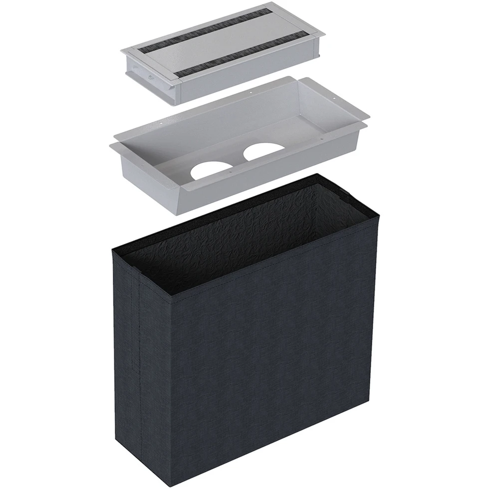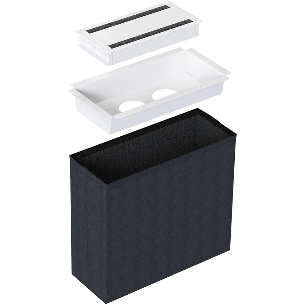 Лючок для установки 2 розеток Powerdot. Комплектация: крышка 935-TC30, короб для установки розеток 935-TP02, текстильный мешок для кабелей 935-TP23. Размеры крышки (ШxГxВ): 312x148x28,1 мм. Монтажное отверстие: 303x141 мм. Цвет белый.