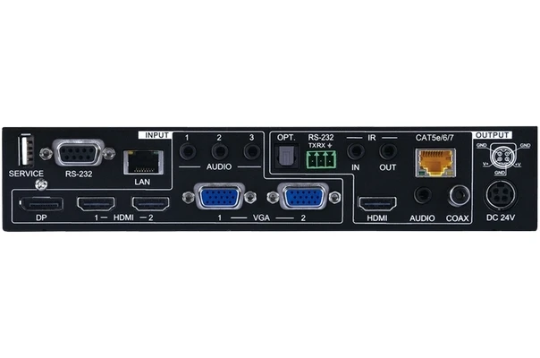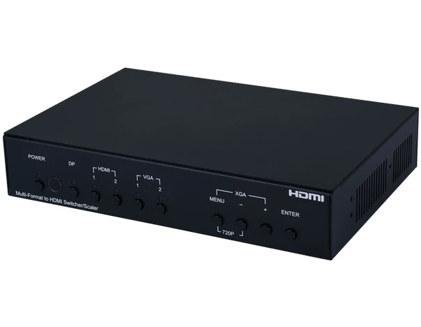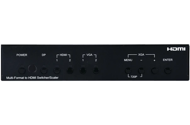Масштабатор-автокоммутатор сигналов 2хHDMI 1080p (1920х1200, 2D, 3D) с HDCP 1.4, DisplayPort 1080p, 2хVGA / YPbPr (D-Sub-15) 1920х1200, 3х стереоаудио (Jack 6,3 мм, 2х miniJack 3,5 мм) в сигнал HDMI 1080p (1920х1200, 2D, 3D) с HDCP и EDID, HDBaseT cо стереоаудио (miniJack 3,5 мм). Автопереключение при потере сигнала, управление по ИК и RS-232. Совместимый приемник CH-1529RX.