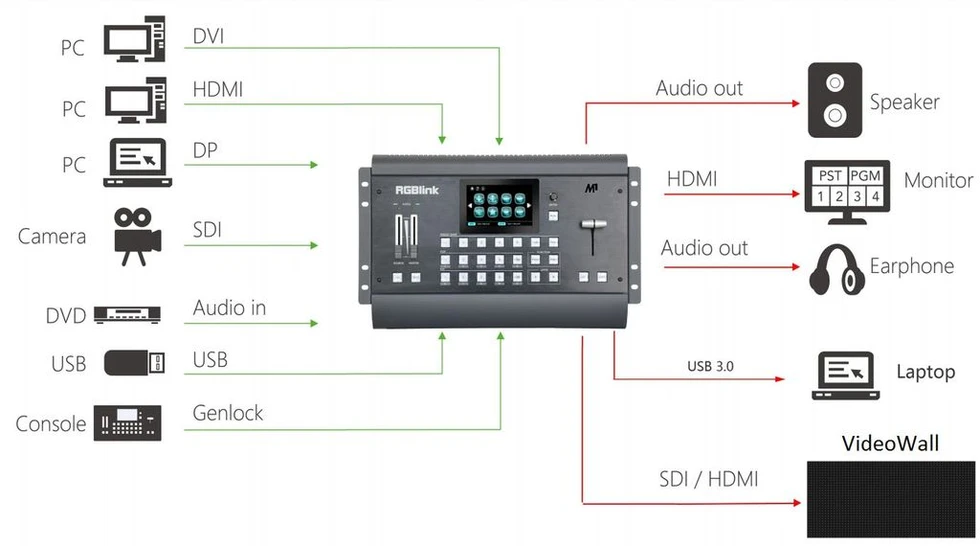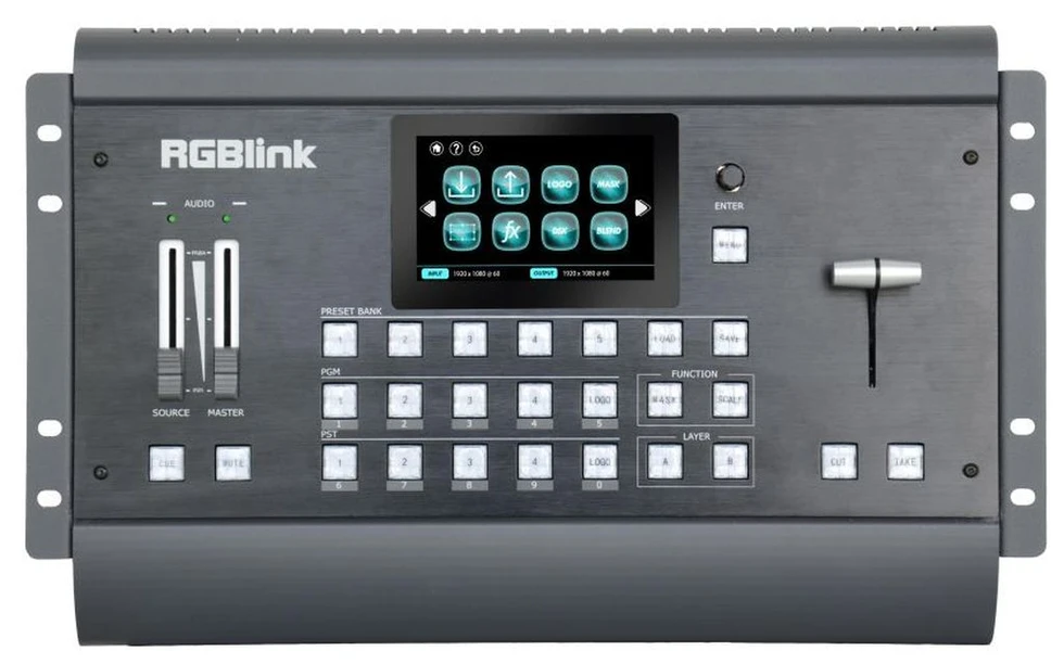 RGBlink M1 – компактный модульный видеомикшер. Является самым компактным в линейке RGBlink, в котором при минимальных размерах достаточное количество кнопок для быстрого управления всеми основными функциями.