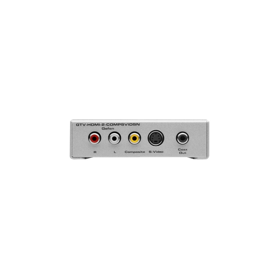 Масштабатор сигнала HDMI 1.2 1080p/60 (1600x1200/60) в сигналы CV(RCA), S-Video (mini-DIN4) 576i/50 с декодером аналогового стерео (2xRCA) и цифрового аудио S/PDIF (RCA), не поддерживается защищенный HDCP-сигнал.