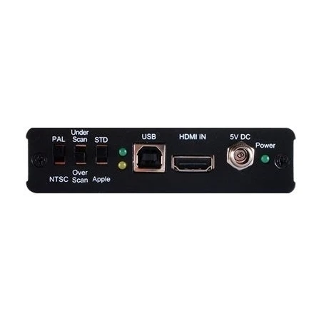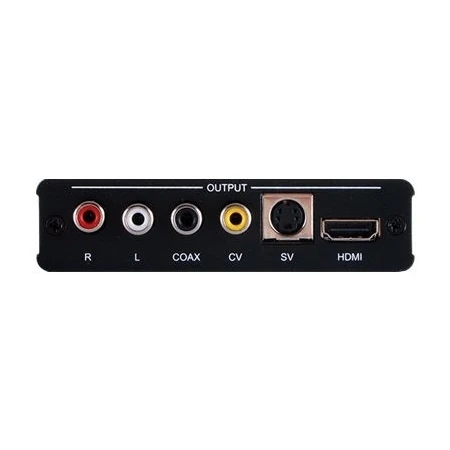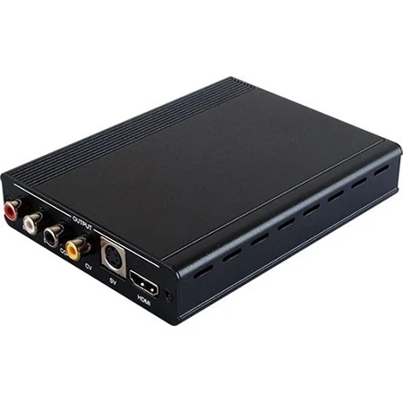 Масштабатор сигнала HDMI 1080p (1920х1200/60) c HDCP и эмбедированным аудио до 96 кГц в сигналы CV (RCA), S-Video (mini-DIN4), стереоаудио (2хRCA), цифрового стерео S/PDIF (RCA) с проходным выходом HDMI 1080p (1920х1200/60), совместимость с устройствами производства Apple.
