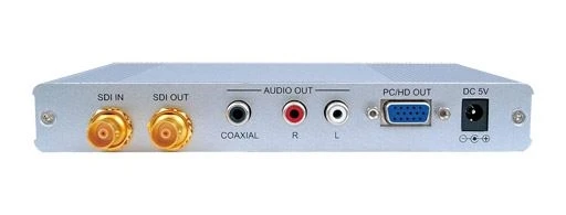 Масштабатор сигналов SD/HD/3G-SDI(BNC) в сигнал VGA/YUV (D-sub-15) 1080p/60 (1920х1200/60) с проходным SDI (BNC) и декодером стереоаудио (2хRCA) и S/PDIF (RCA).