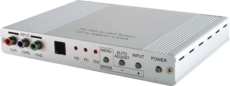 Масштабатор сигналов VGA (D-sub-15) 1920x1200, YPbPr / YCbCr (3хRCA) 1080p, DVI-D (DVI-I) 1080p (1920x1200) с HDCP в сигналы VGA (D-sub-15) и DVI-D (DVI-I) 1080p (1920x1200), коррекция изображения, управление по ИК.