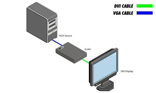 Масштабатор сигналов VGA/YUV 1080p (1920x1200/60, 2K) в сигналы DVI-I 1080p (1920x1200/60,2K), коррекция изображения, управление по ИК.