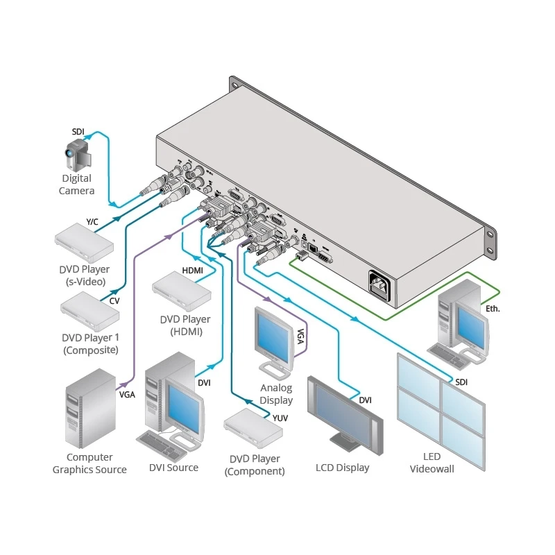 Масштабатор видеосигналов с 8 входами в сигнал DVI / VGA для светодиодных экранов и проекционных видеостен.