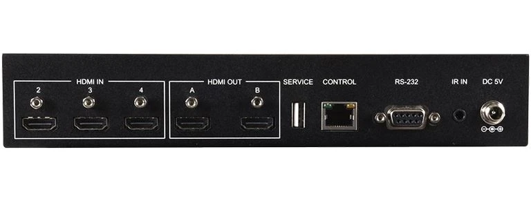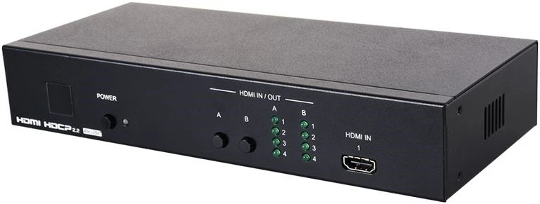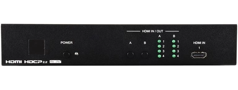Матричный коммутатор 4х2 HDMI 2.0 UHD 4K (4096x2160/60, 3D) с HDCP 2.2 и расширенным EDID, полоса пропускания 600 МГц, поддержка эмбеддированного аудио до 7.1, управление по ИК, RS-232 и IP.
