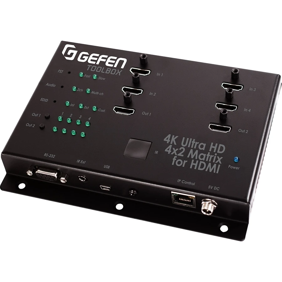 Матричный коммутатор 4x2 сигналов HDMI 1080p (4Kx2K/30, 3D) с HDCP, FST и EDID, управление по ИК, RS-232 и IP, настенный, цвет черный.