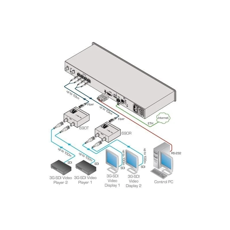Матричный коммутатор 4х4 сигналов 3G HD-SDI с оптическими входами/выходами.