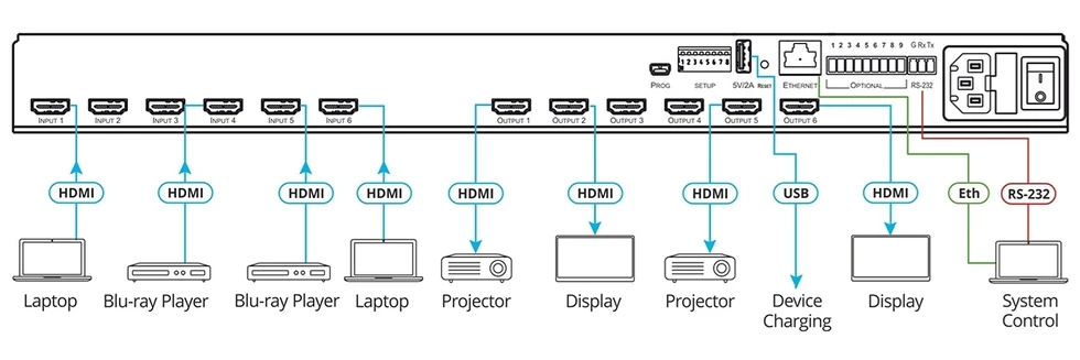 Матричный коммутатор 6х6 HDMI с HDCP 2.