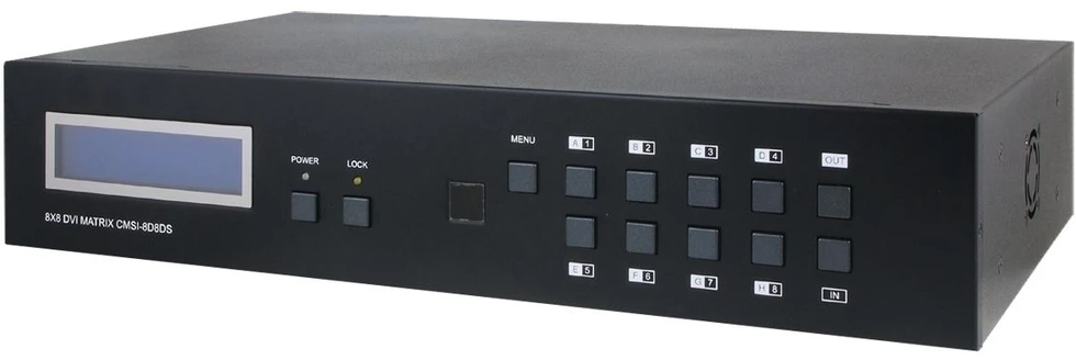 Матричный коммутатор 8х8 DVI-D Single Link (1920х1200, 3D) c HDCP и EDID, управление по ИК, RS-232 и IP.