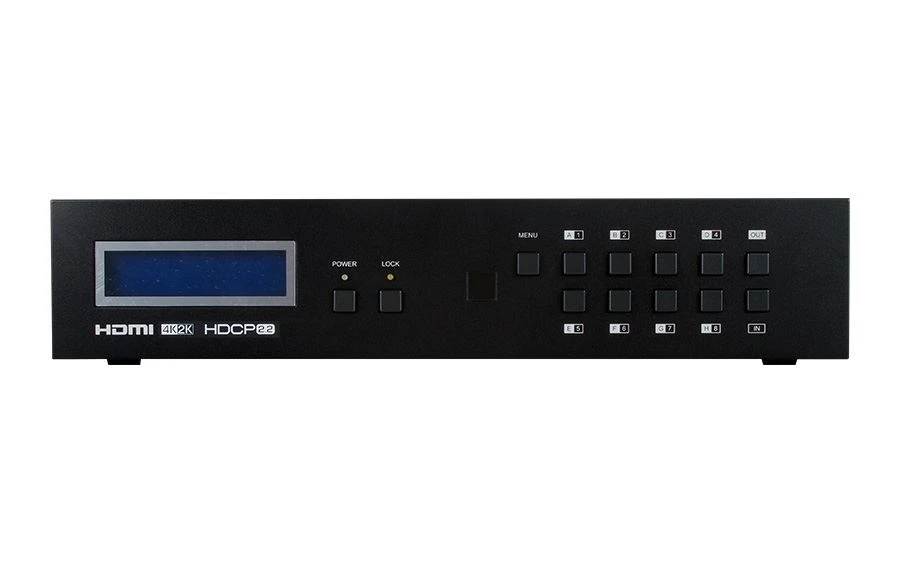 Матричный коммутатор 8х8 HDMI 4K2K (3840x2160p/30, 4096x2160p/30, YUV420 – 4096x2160p/60, 3D) с HDCP 2.2, EDID и LPCM 7.1. Монтаж в стойку, управление по ИК, RS-232 и IP.