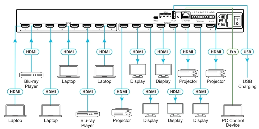 Матричный коммутатор 8х8 HDMI с HDCP 2.