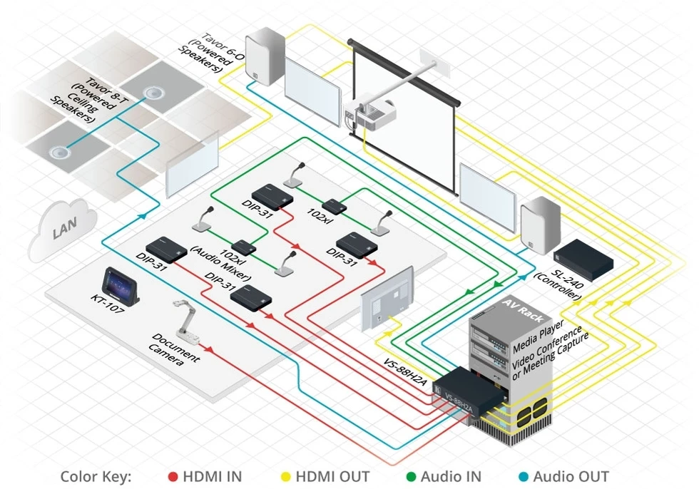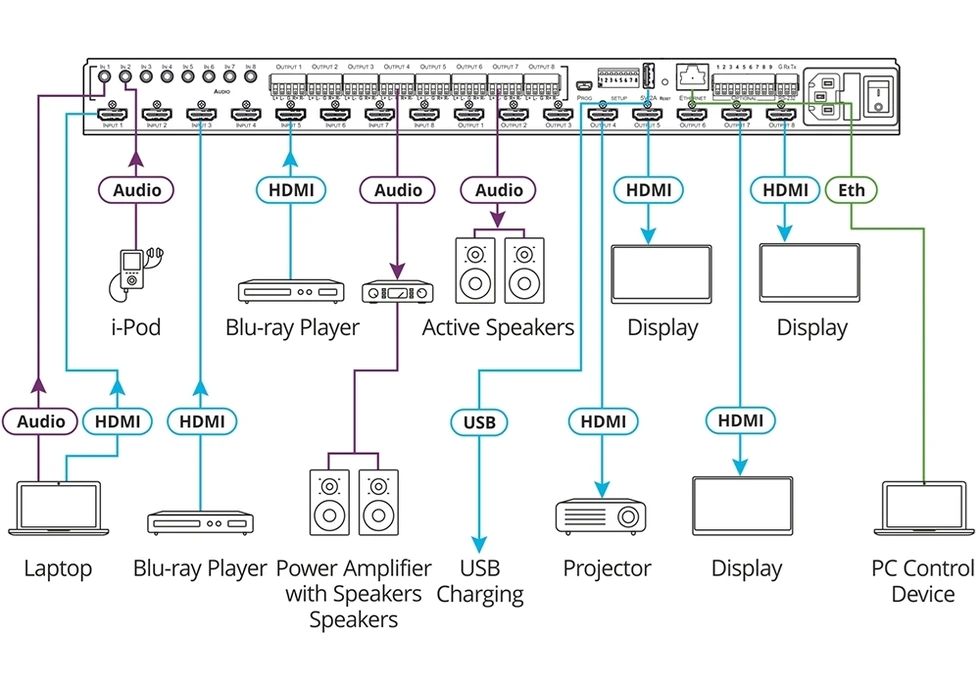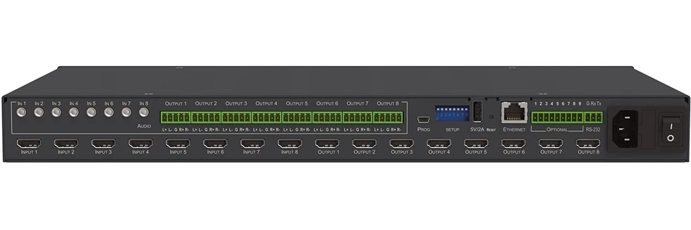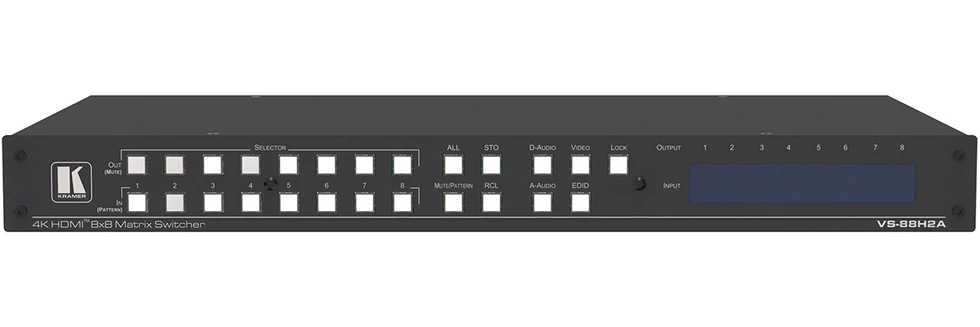 Матричный коммутатор 8х8 HDMI с HDCP 2.2, EDID, 3D и ARC, Step-In, поддержка 4K/60 (4:4:4), 8 каналов эмбеддирования и деэмбеддирования аудио. Управление по IP (web-интерфейс) и RS-232.