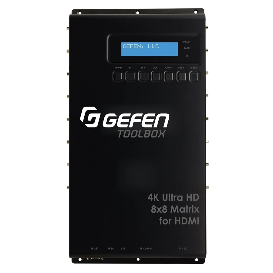 Матричный коммутатор 8x8 сигналов HDMI 1080p (4Kx2K, 3840x2160/60 – 4:2:0, 3840x2160/30 – 4:4:4; 4096х2160, 24/30 – 4:4:4, 3D) с HDCP и EDID, поддержка Syner-G, управление по ИК, RS-232 и IP, настенный, цвет черный.