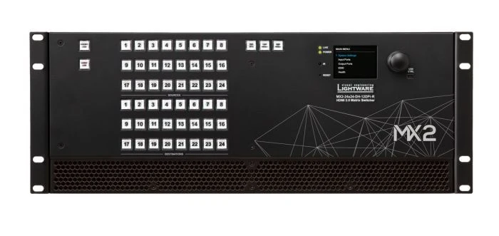 MX2-24x24-DH-12DPi-R - матричные коммутаторы с полным 4K с входными портами DisplayPort и HDMI, +24х HDMI выходов.