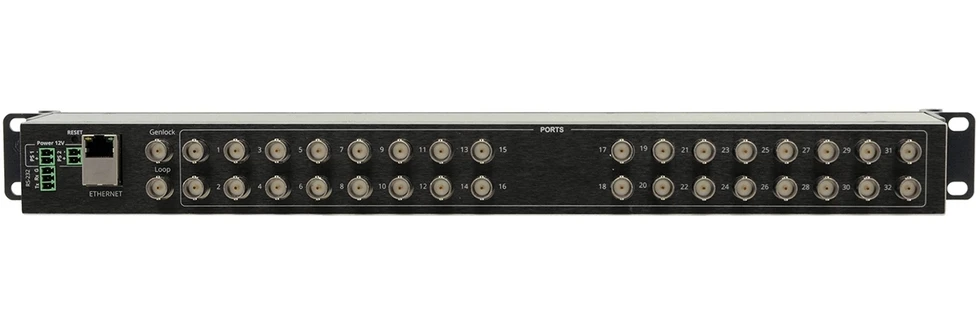 Матричный коммутатор с 32 переназначаемыми портами входов-выходов SD/HD/3G/12G-SDI. Управление по RS-232 и по web-интерфейсу.