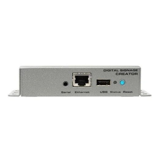 Медиаплеер для Digital Signage с 1,5 Гбайт встроенной памяти, выходы VGA 1024x640 (1024х768), HDMI 720p c аналоговым аудио (miniJack 3,5 мм), USB 2.0 для внешнего накопителя (сенсорного экрана), управление по RS-232 и IP 10/100BaseT, специальное ПО, настенный.