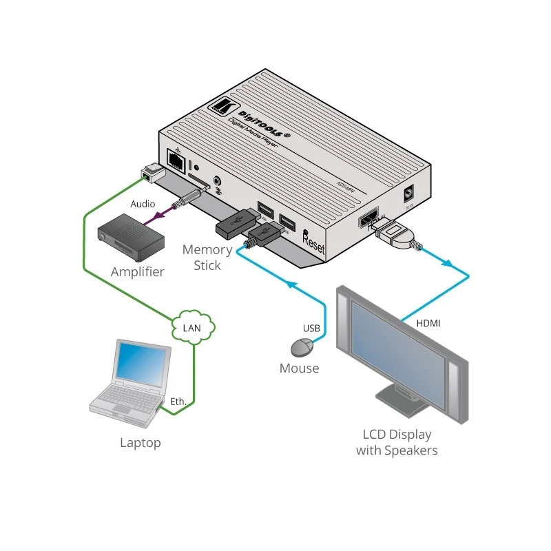 Медиаплеер для Digital Signage; выход HDMI до 4K (2720p) со стереоаудио (miniJack 3,5 мм). Специальное ПО.