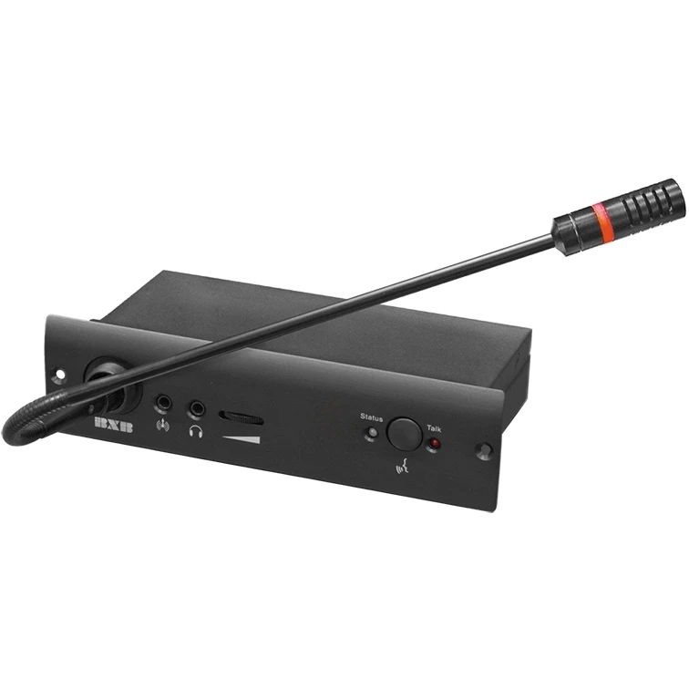 Микрофонный пульт делегата для врезного монтажа, вход и выход аудио (2 х miniJck 3,5 мм) с регулировкой громкости. Кнопка Talk. Не комплектуется микрофоном на «гусиной шее». Подключение по RJ45.