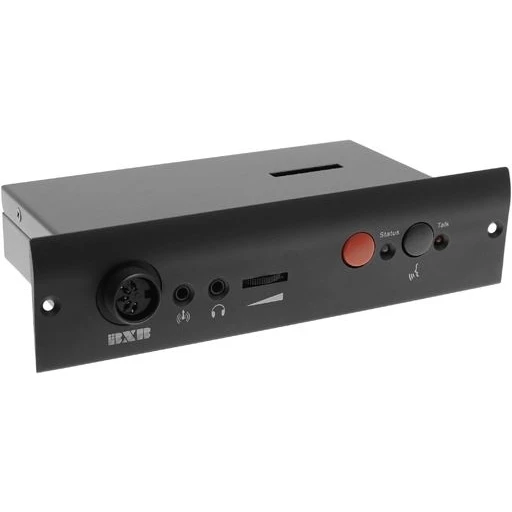 Микрофонный пульт председателя для врезного монтажа, выход для наушников с регулировкой громкости, алюминий. Кнопки Control / Talk. Не комплектуется микрофоном на «гусиной шее». Габаритные размеры: 75х170х43 мм. Подключение по RJ45.