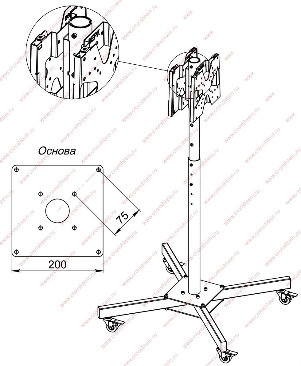 • Стандарт крепежных отверстий VESA: мин. 100x100, макс. 600x400 мм.