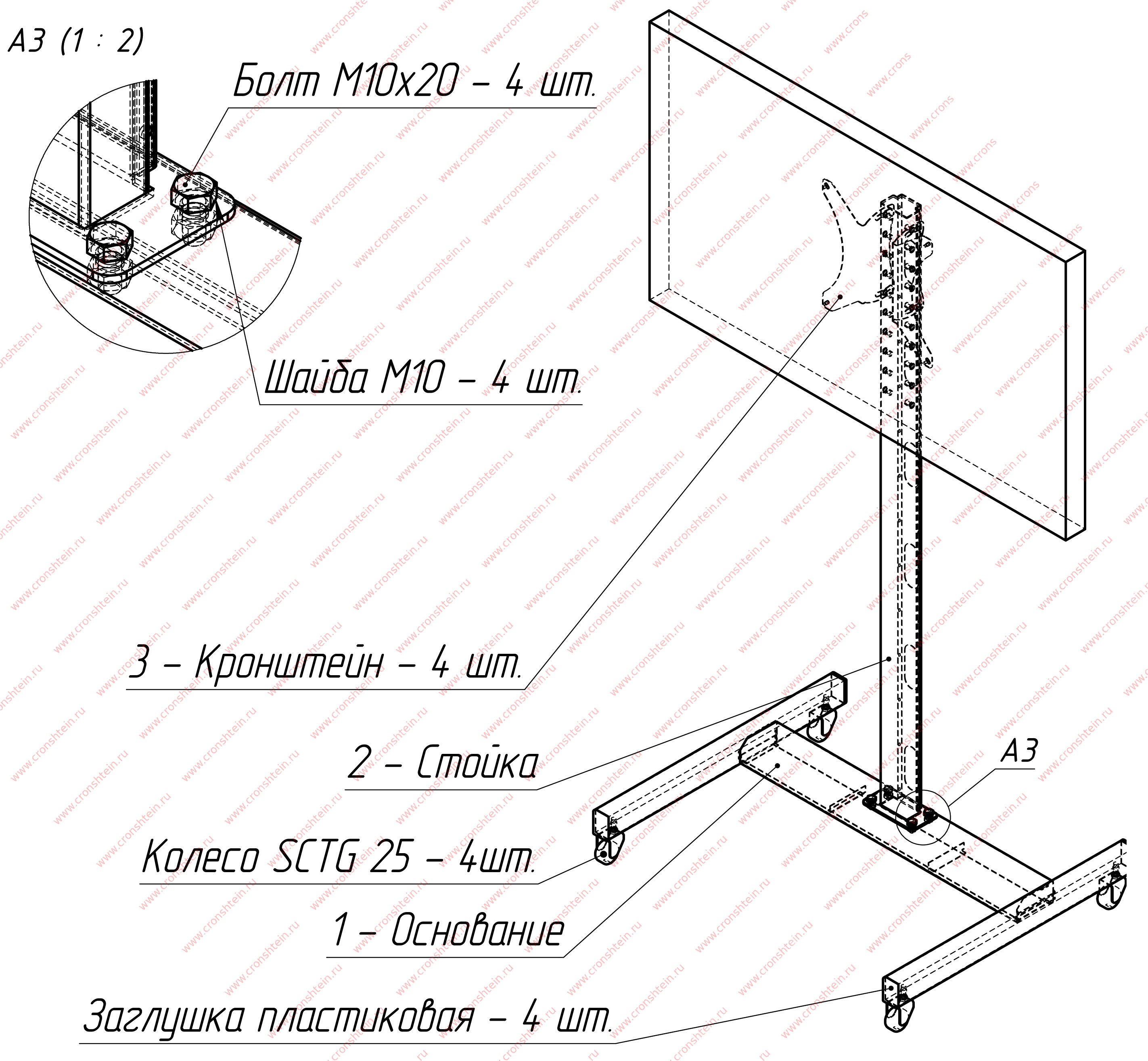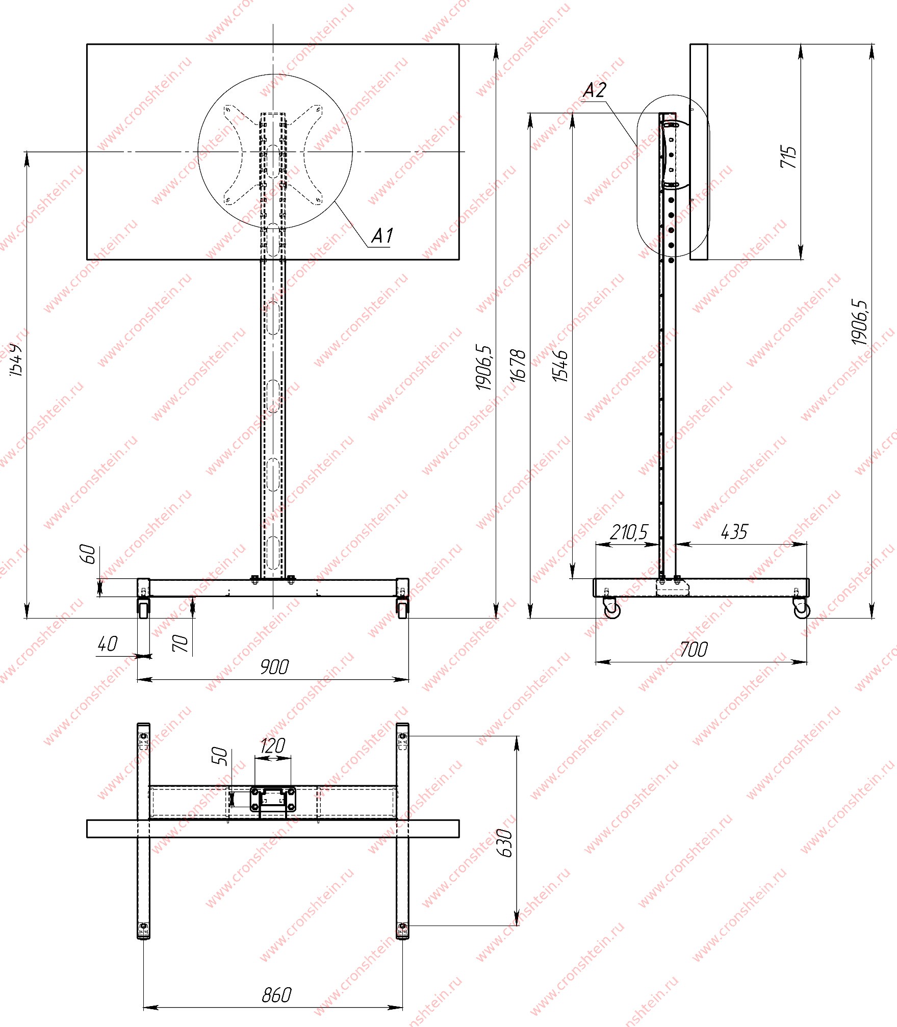 • Высота от пола до верхнего торца несущей трубы: до 1670 мм